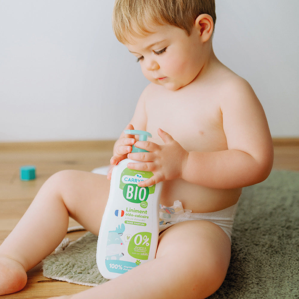 Carryboo Natural und Bio Liniment reinigt, pflegt und schützt den zarten Babypo von Geburt an.